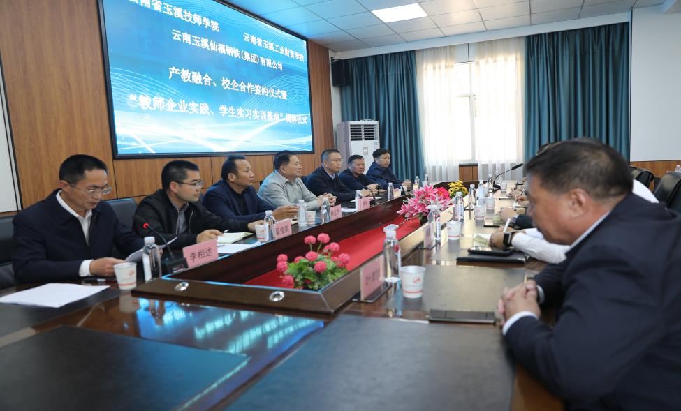 云南玉溪仙福鋼鐵(集團)有限公司和云南省玉溪技師學院云南省玉溪工業財貿學校產教融合、校企合作簽約儀式暨教師企業實踐、學生實習實訓基地揭牌儀式